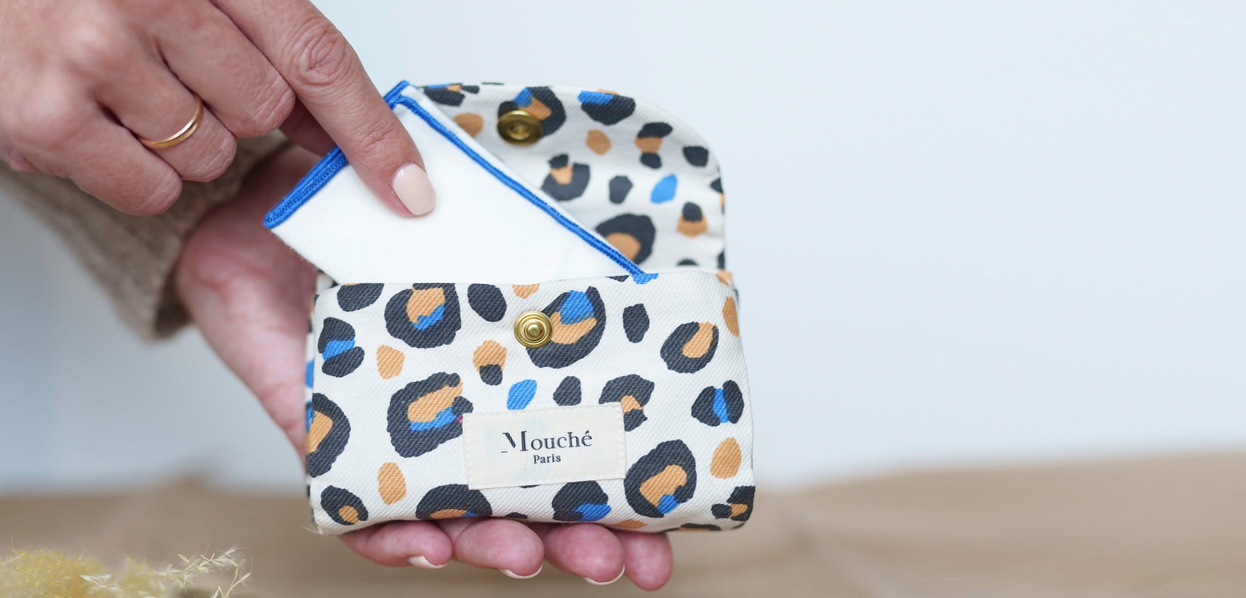 La pochette L'Originale Mouché Paris est l'alternative aux mouchoirs en papier. Élégante, douce pour votre peau et respectueuse de l'environnement, elle se distingue par son design pratique grâce à son double compartiment ingénieux (propre et usagé) et contient 6 mouchoirs en tissu ultra-doux.